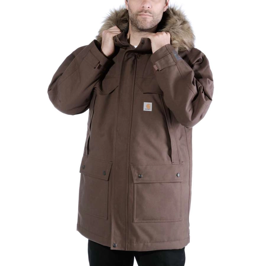De Quick Duck Sawtooth Parka jas voor heren van het Amerikaanse kwaliteitsmerk Carharrt is een robuuste jas welke voor een optimale bescherming zorgt bij gure weersomstandigheden. De jas is volledig wind- en waterdicht en heeft een ruime capuchon voor een extra goede bescherming tegen de elementen. De kraag van de capuchon is eventueel afneembaar. Het gebruikte materiaal zorgt er tevens voor dat de jas goed ademend is waardoor de jas altijd comfortabel zit, zelfs bij fysieke inspanningen.