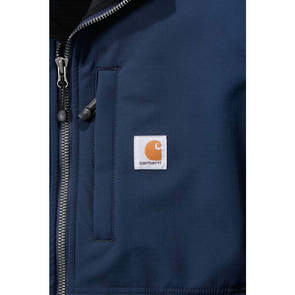 Deze lichtgewicht jas van het merk Carhartt biedt u ondersteuning tijdens uw werkzaamheden. De jas is winddicht en behandeld met een duurzame waterafstotende coating. De jas geeft u veel bewegingsvrijheid door het elastisch materiaal en biedt daarnaast ook veel ruimte aan materiaal omdat de Rough Cut beschikt over veel afsluitbare zakken aan de binnen- en buitenkant.
